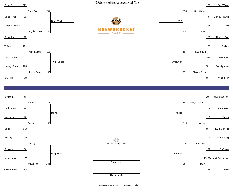 The second round of the Odessa Brewbracket has closed, with a selection of winners that have proven to be fan favorites by popular vote. With your passionate votes, below are the breweries that won your favor! In a surprising turn of events, only two out of three past champs have made it to the next round of the 2017 #OdessaBrewbracket. See a full breakdown of Round 2 Results » |